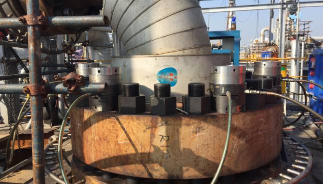 實(shí)際上,雙級(jí)拉伸器在一些非常狹小與工況位置復(fù)雜的設(shè)備可以解決液壓扳手所不適合的位置螺栓拆鎖問題。因此,只能說這兩種工具各有優(yōu)勢,需要根據(jù)現(xiàn)場情況來具體選擇。